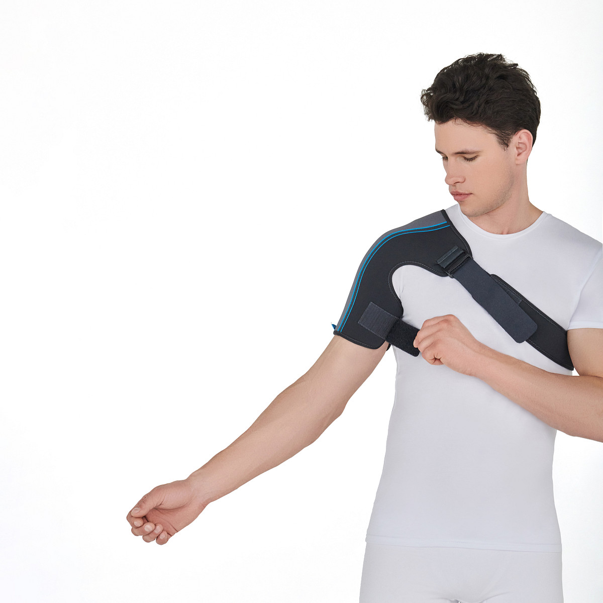• Бандаж универсален, его можно надевать как на левое, так и на правое плечо;
